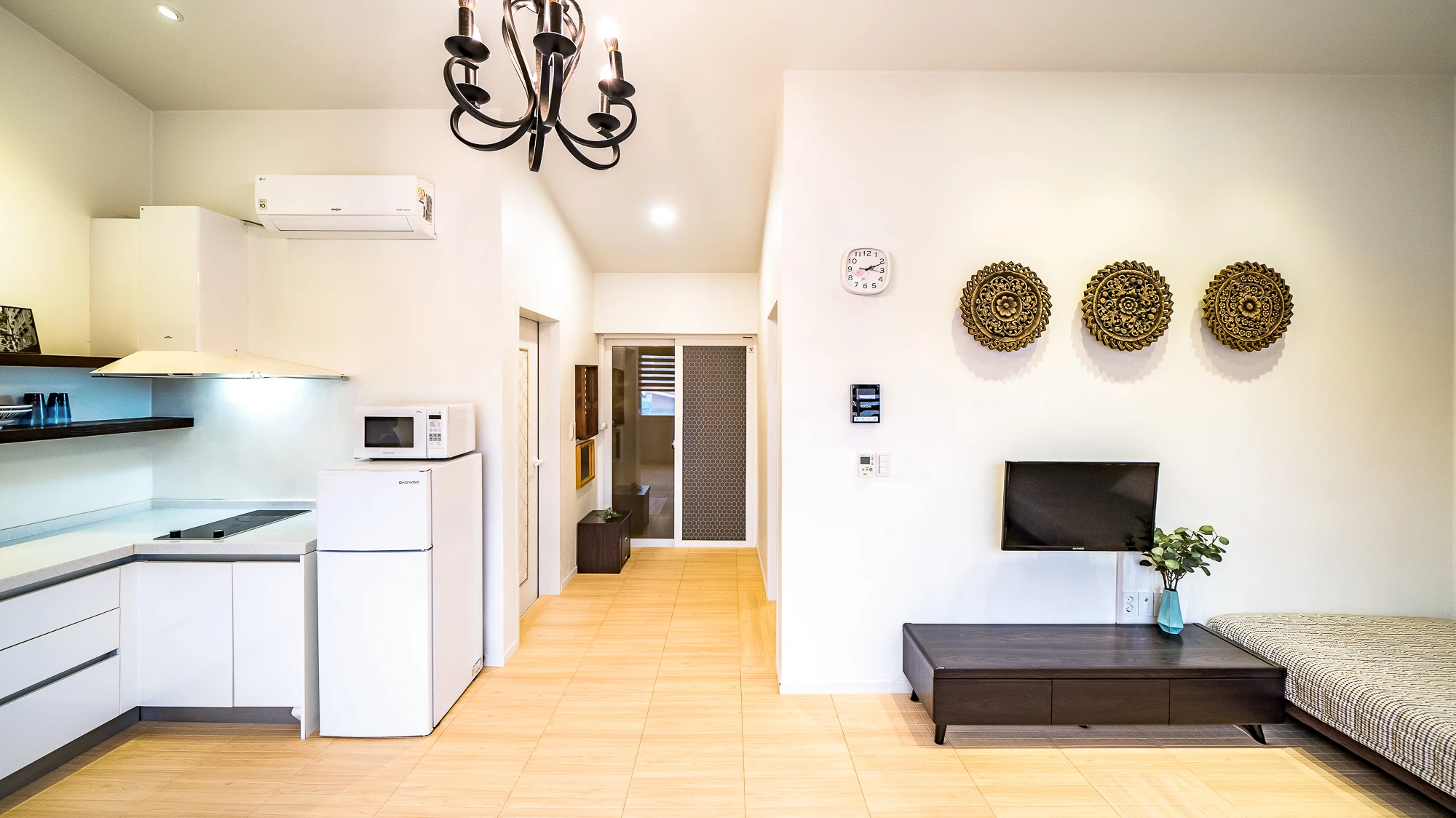 - 집기품목 : TV, 냉장고, 드라이기, 린스, 바디워시, 샴푸, 에어컨, 인덕션, 전기밥솥, 전자레인지, 취사시설/도구, 커피포트, 타월, 화장대, 욕실용품